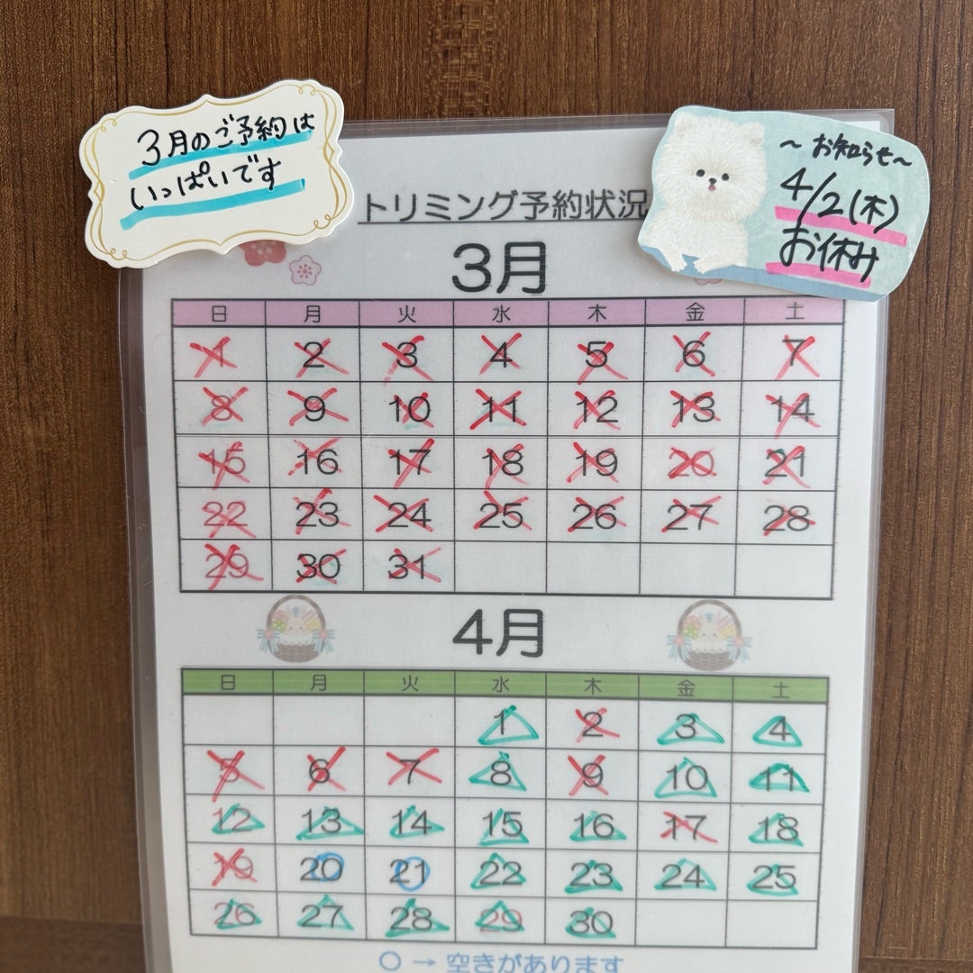 3月のご予約はいっぱいです。