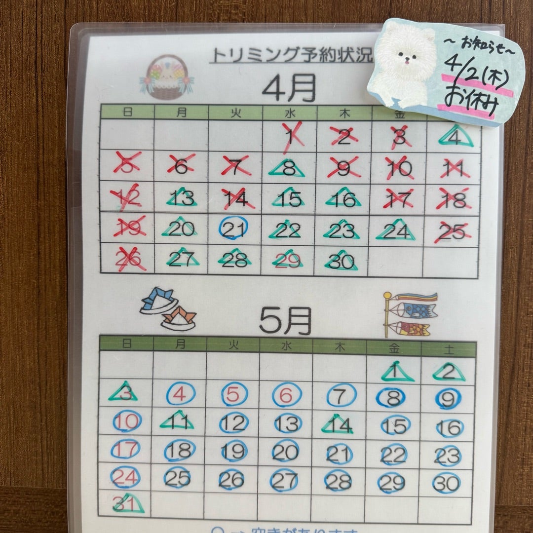 (トリミングの2週間前までに接種をお願いします)